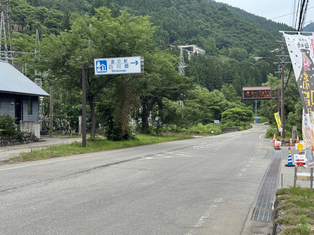 東海北陸自動車道の白川郷ICを降りて、すぐの場所にあります。